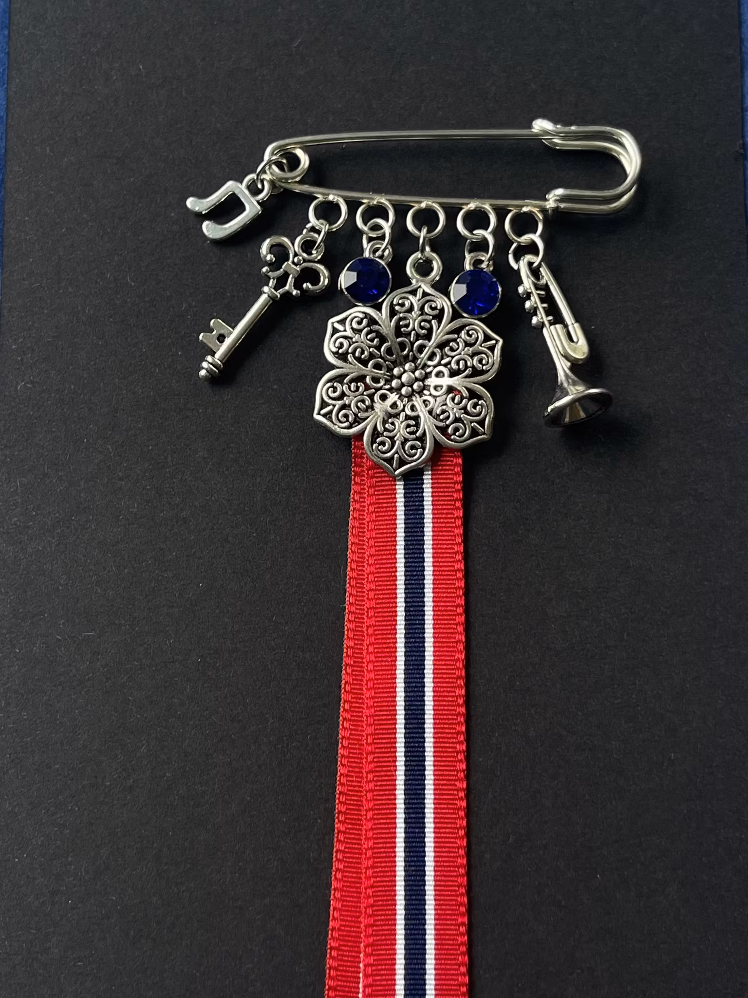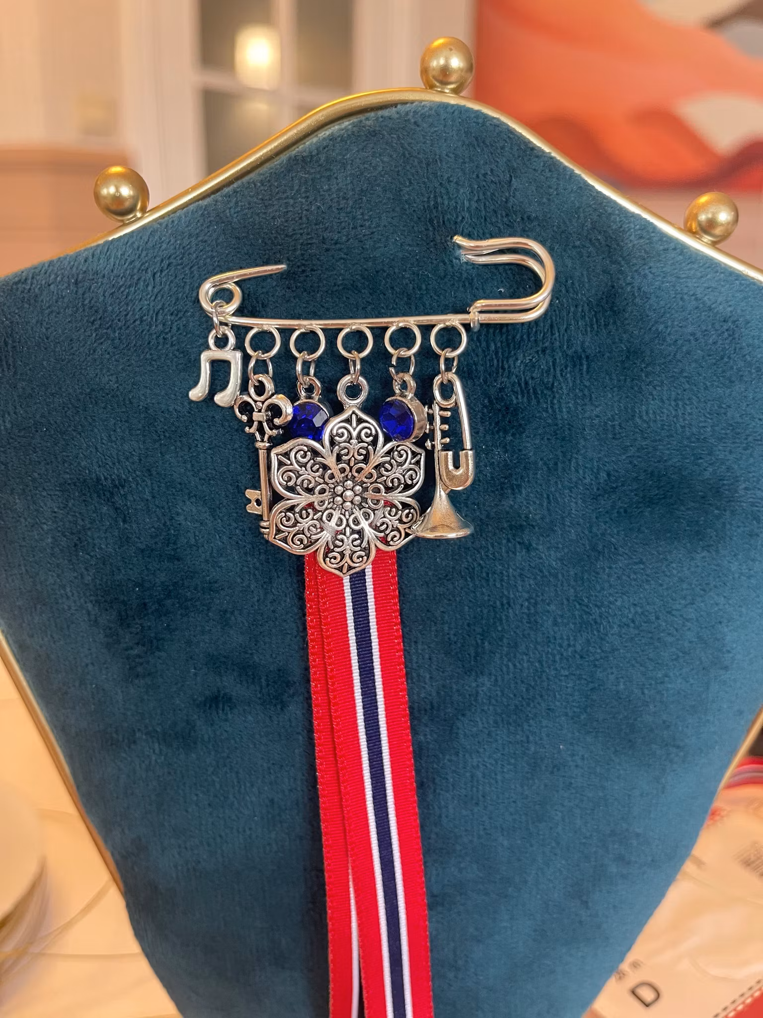 17 mai nål, bunadsnål, brosje bunad, sølvforgylt nål, uten krystaller, filigran smykke, musikknål, håndlaget nål