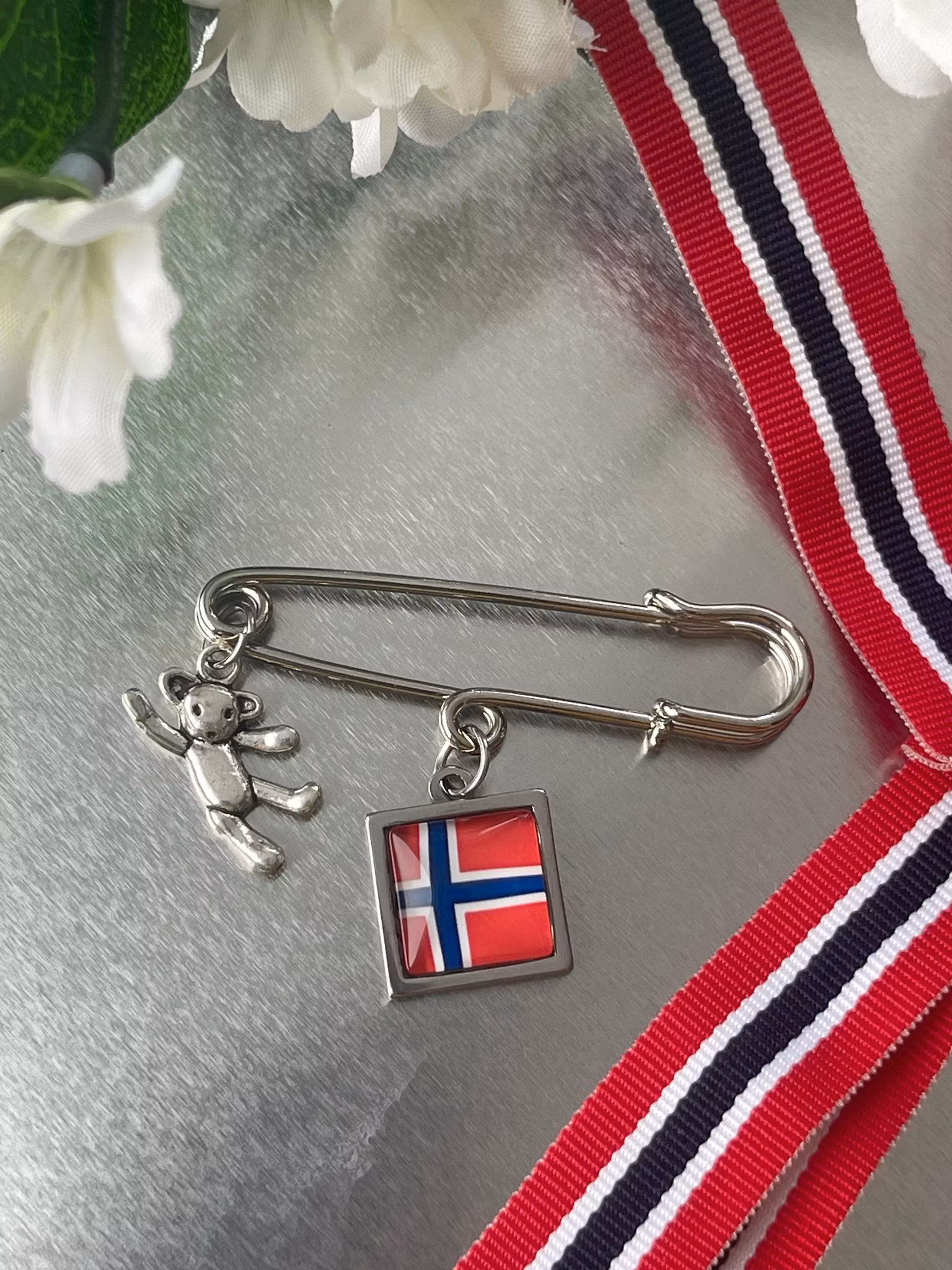 Sølvforgylte17.mai-nåler for barn med små lekende anheng. Se varianter!