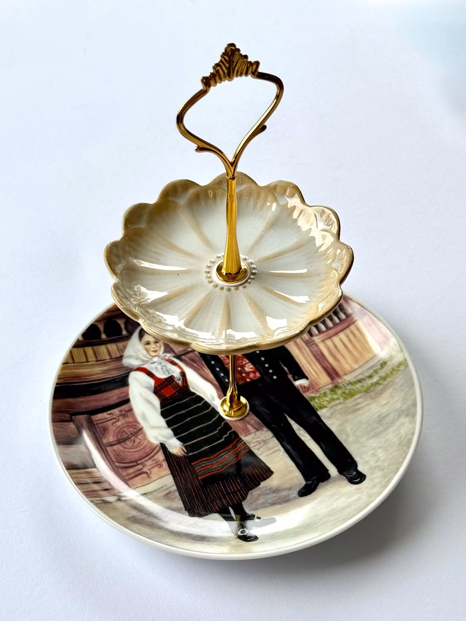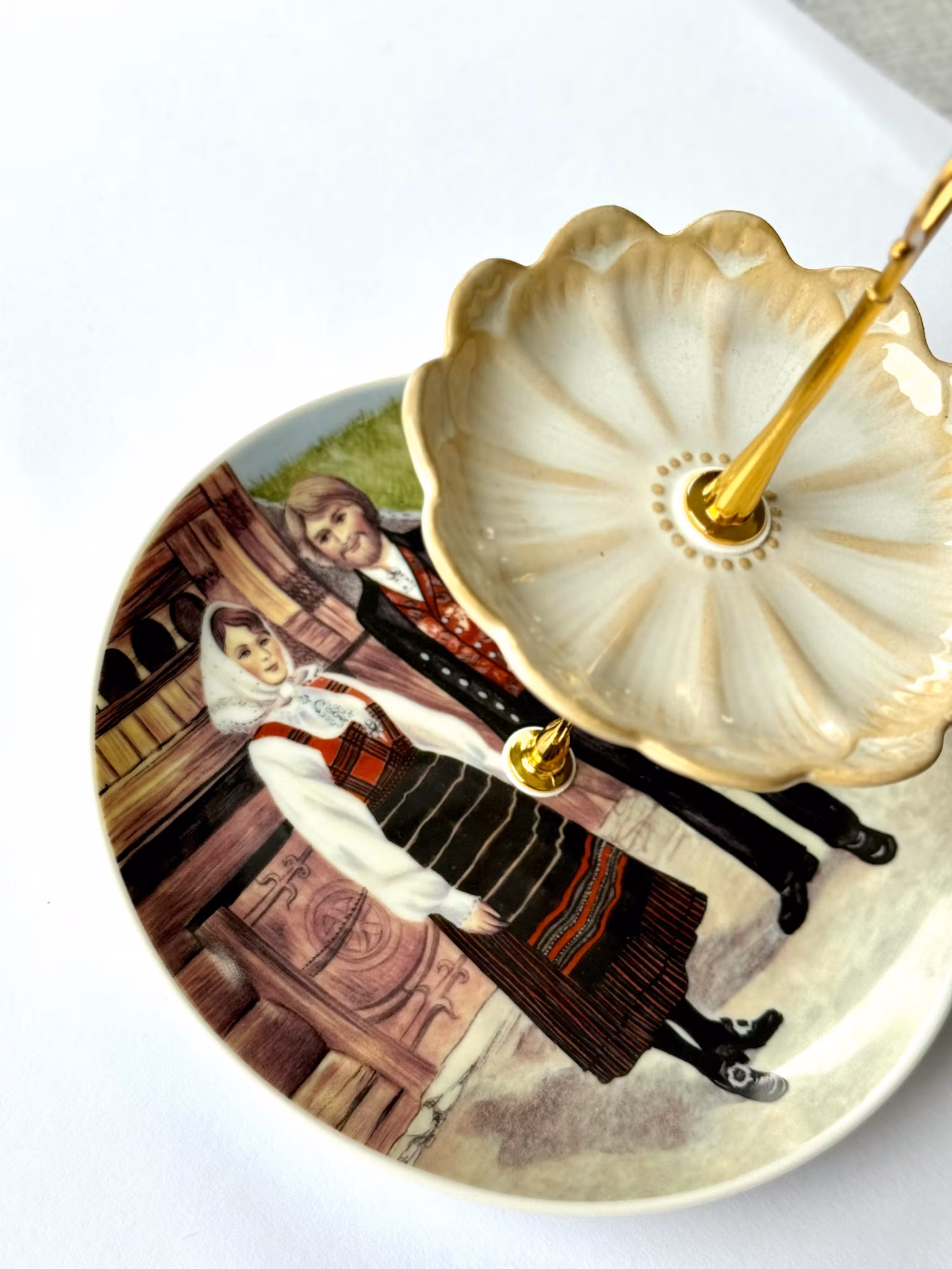 petite etasjefat, lite etasjefat, folkedrakt, vintage fat, norsk stil, nasjonalromantikk, serveringsfat, smykkefat, dekorfat, unikt fat, gaveidé, Snålnåla petite collection