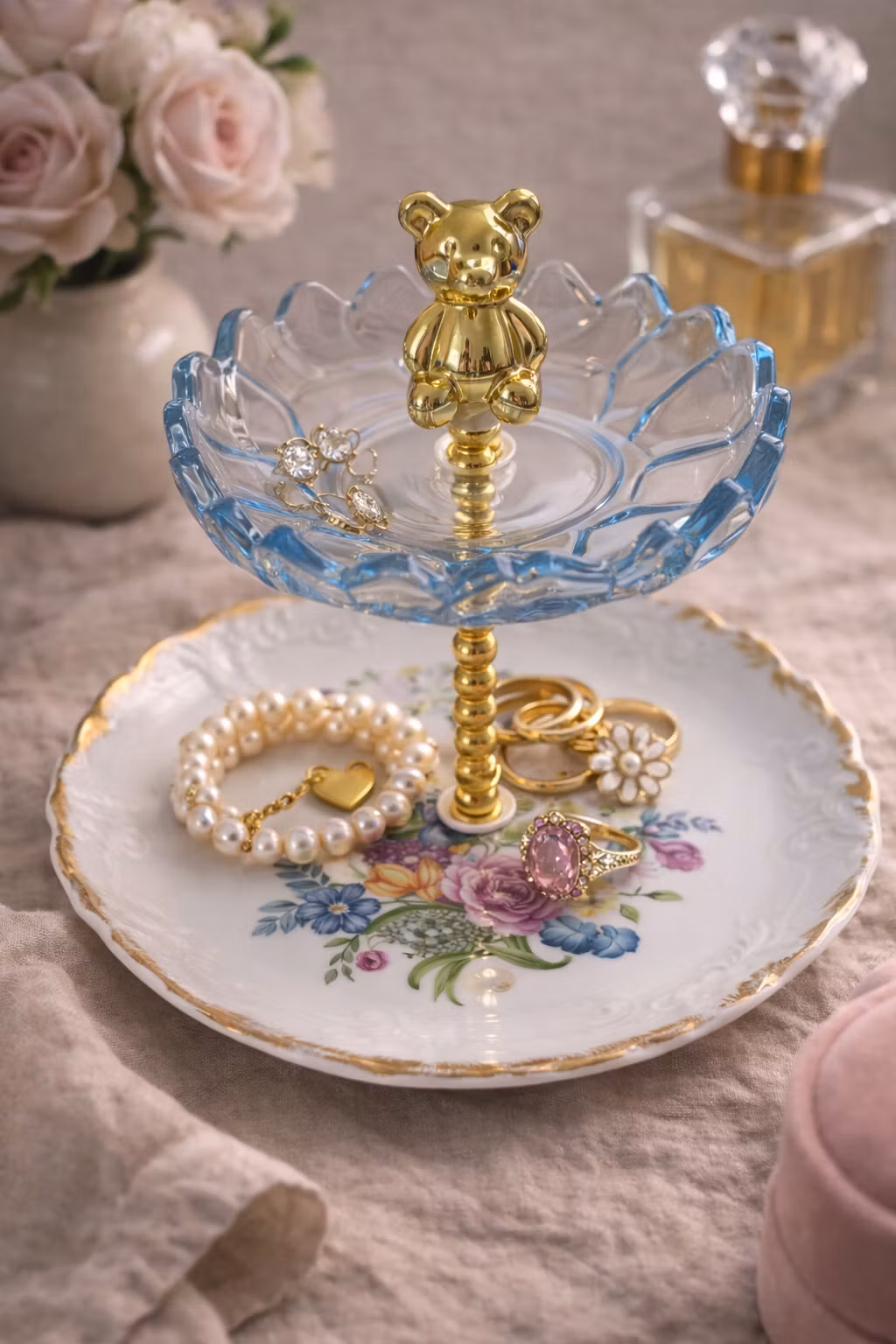 🩵Petit etasjefat – Pastell & Gull 🩷