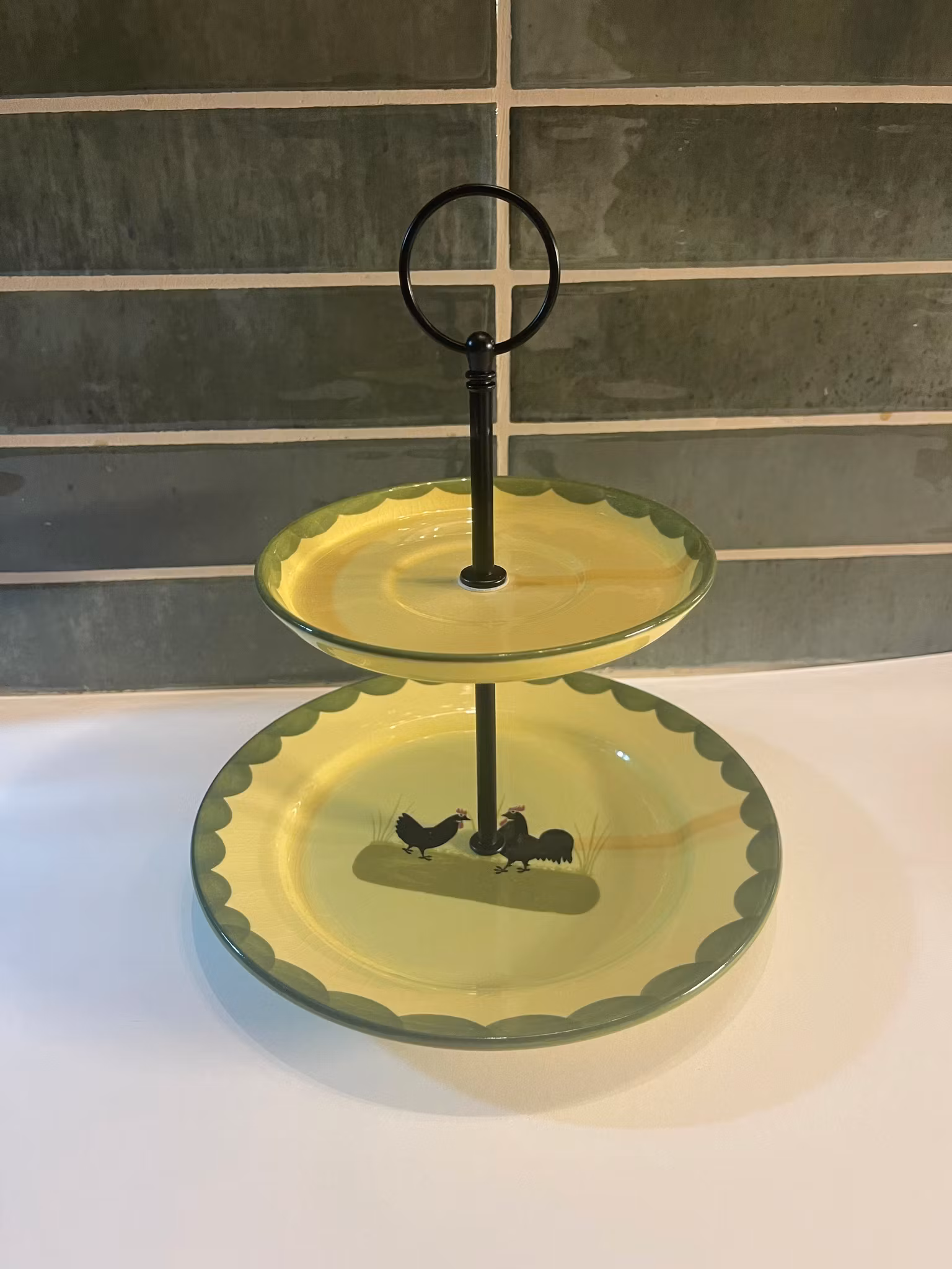Disse fatene er laget av Zeller Keramik (Tyskland) og har det ikoniske hønemotivet i sort, kombinert med myk gul tone og grønn kant. Et uttrykk som er både nostalgisk og tidløst – perfekt til påske og hele våren.