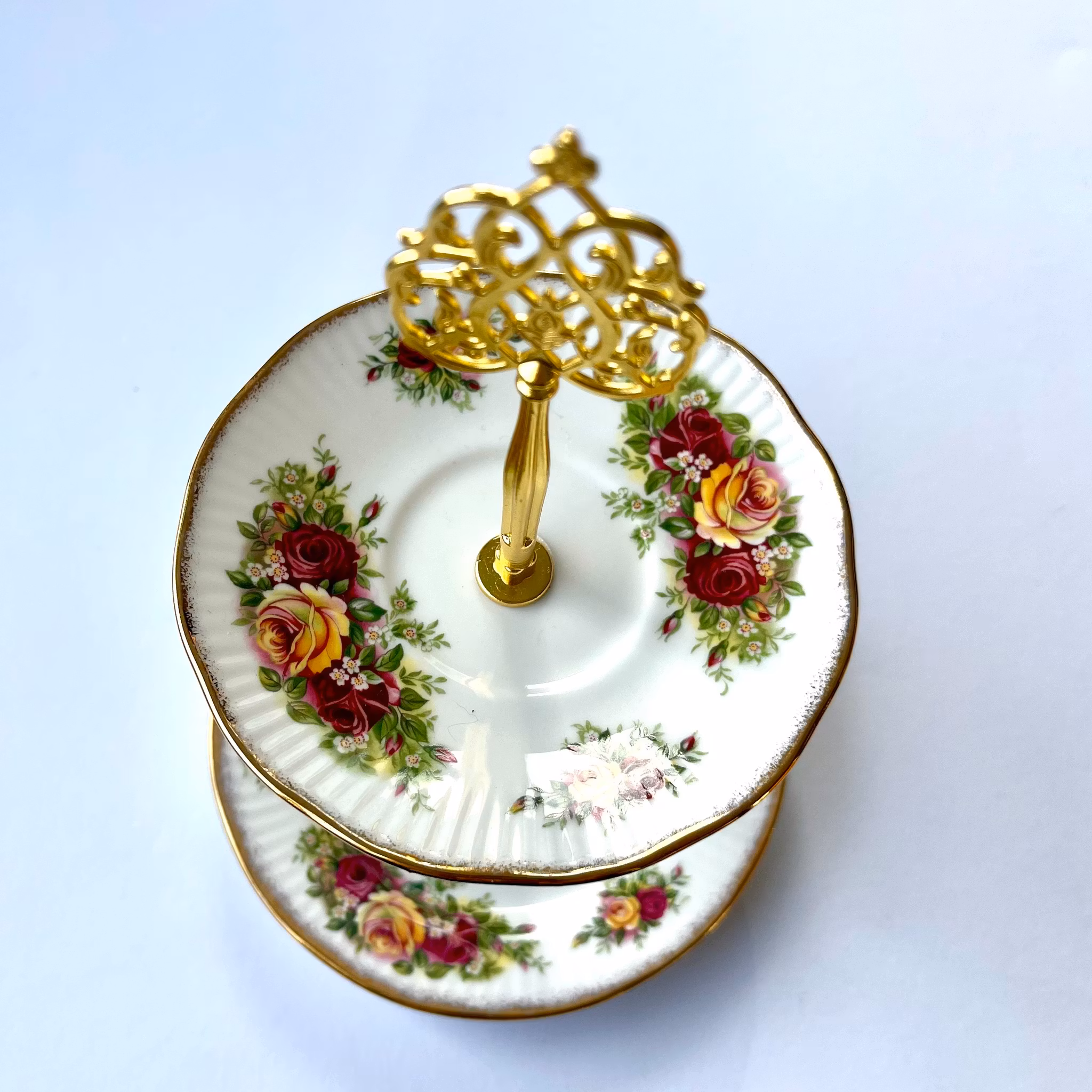 Nydelig, lite etasjefat i ekte vintage porselen fra Elizabethan – “English Garden”.