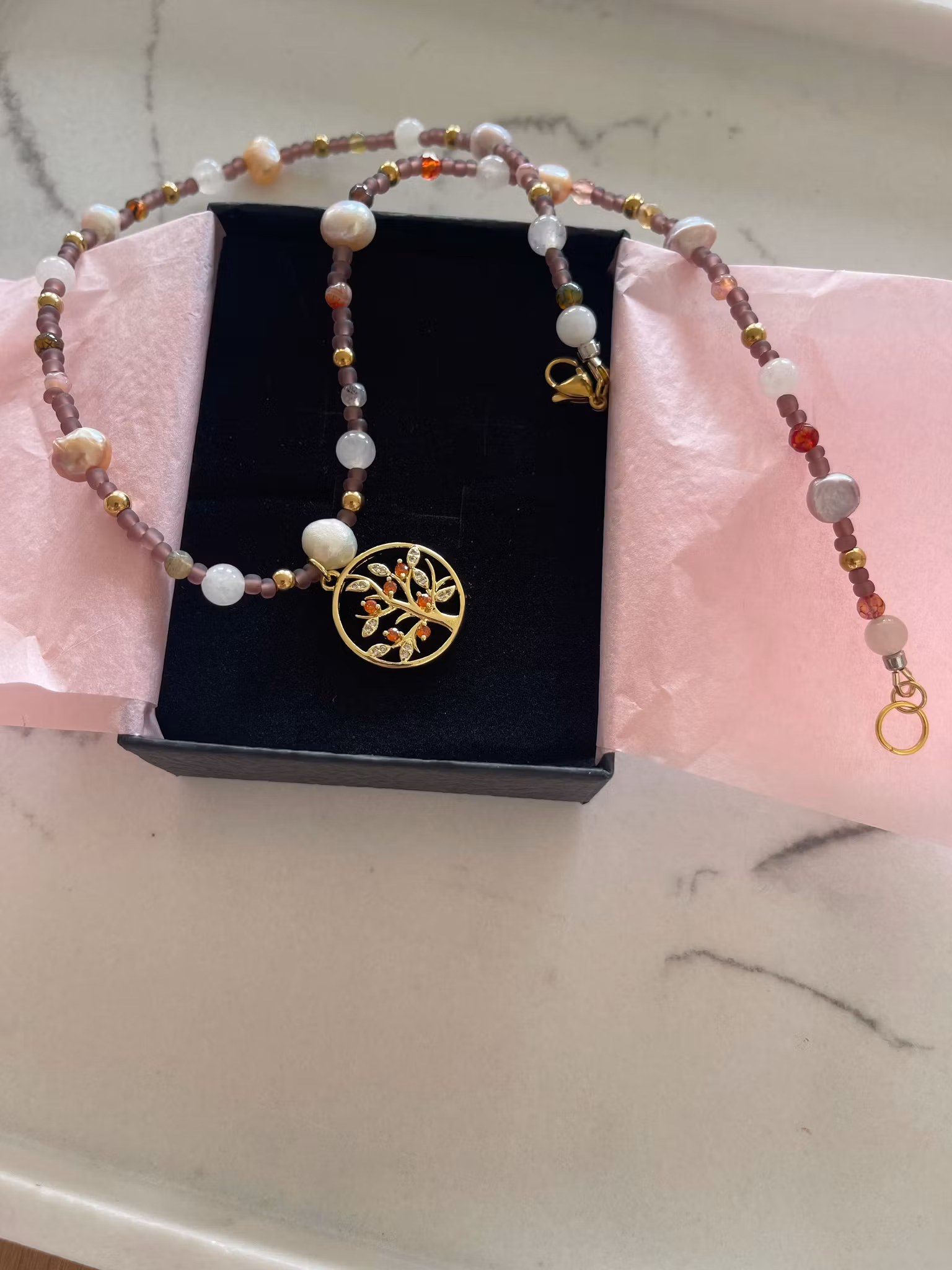 Perlekjede med anheng 320,- I lager. Legg i handlekurv Produktbeskrivning Tilbakemeldinger Vakre perler, anheng: livets tre med krystaller.