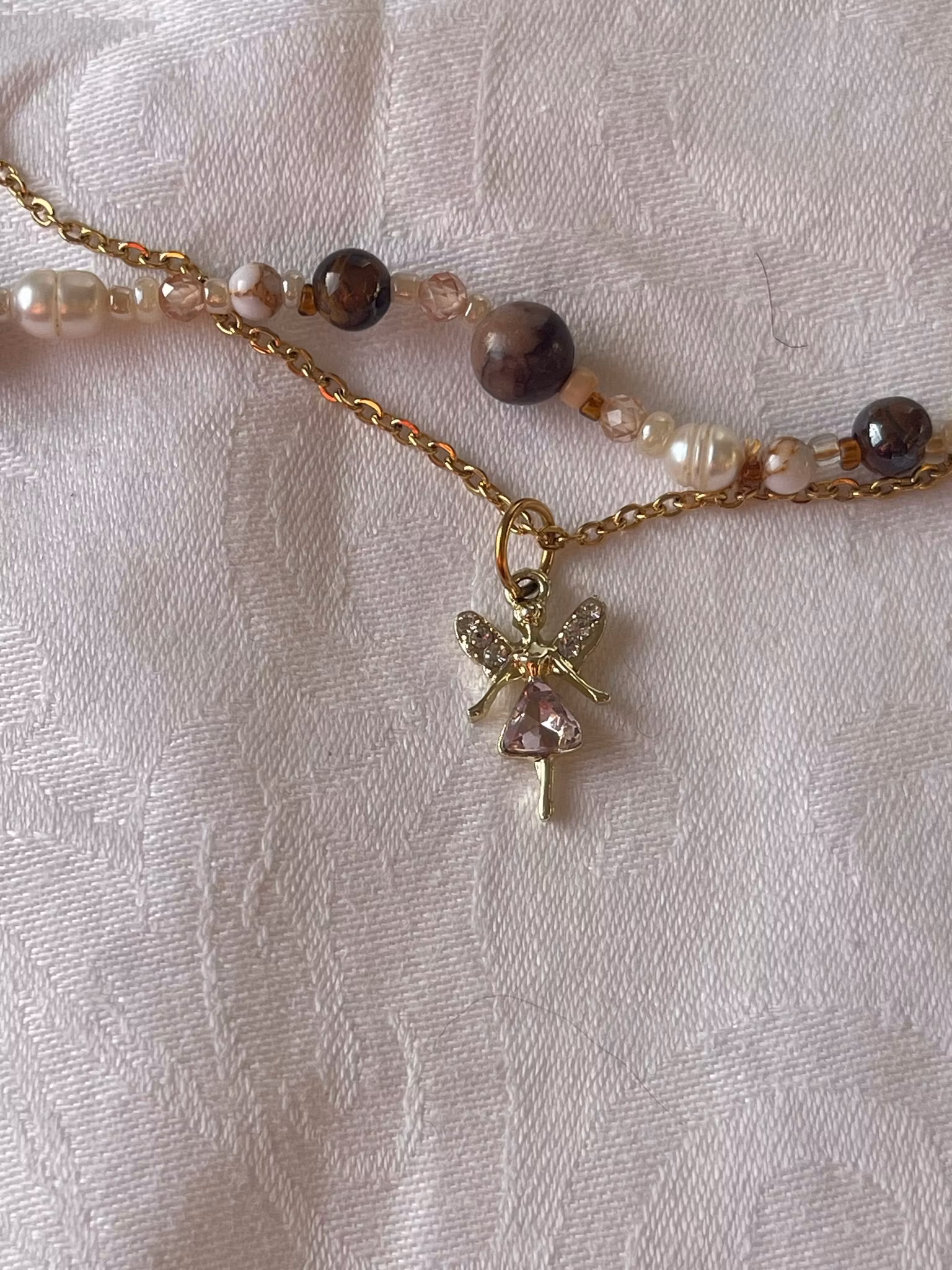 Perlekjede og lenke med engel eller fe