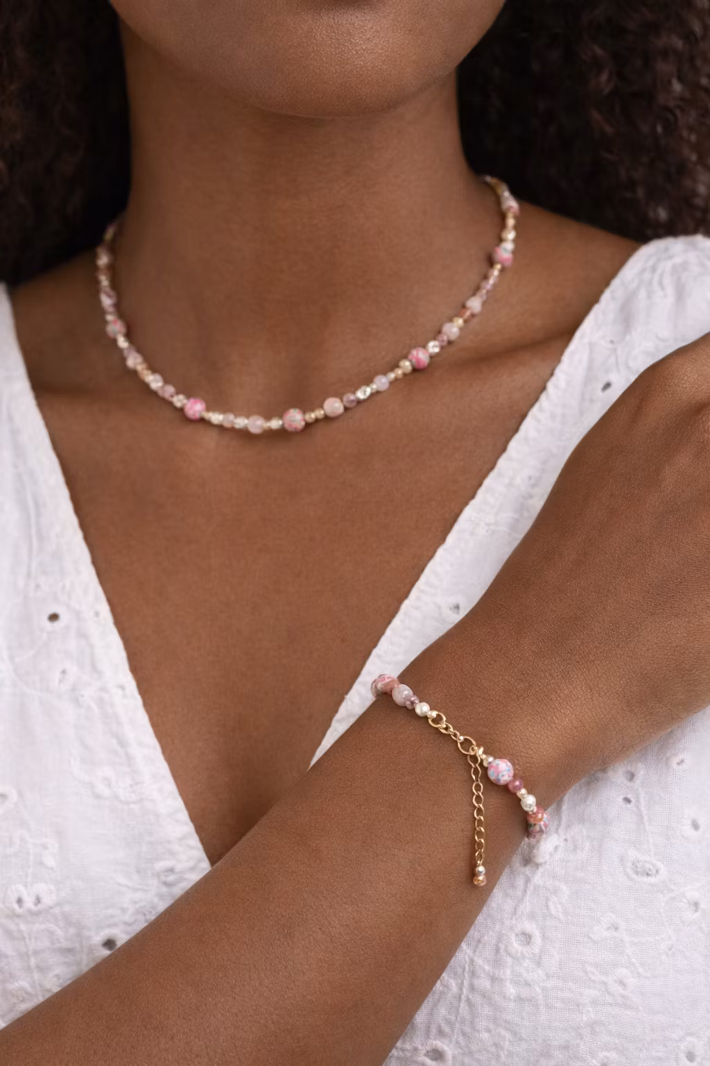 Delikat smykkesett i myke rosatoner 🌸